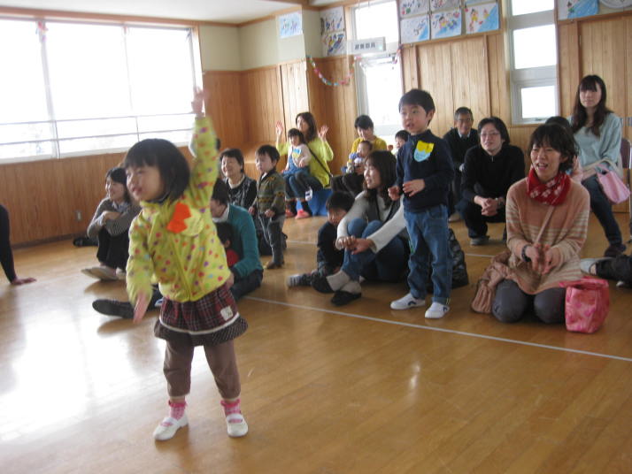 3月3日(月)みんなが作ったお雛様がステージに飾られ、とても華やかな雰囲気の中、ひなまつり会が行われました。歌を歌ったり、来年度入園するお友達も一緒にゲームをしたりして、和やかな会になりました。