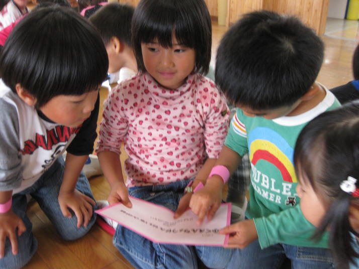 10月16日(水)幼稚園の60歳の誕生日。みんなで祝う会を行いました。ハッピーバースデーの歌に始まり、大江幼稚園○×クイズや縦割り班で園内を巡り指令をクリアしながら宝を探し出すゲームなどを楽しみました。なかよし組や星組の手を優しく引いてあげる姿、あちらこちらで興奮して盛り上がる子どもたちの声。幼稚園もとても喜んでいたように感じられました。